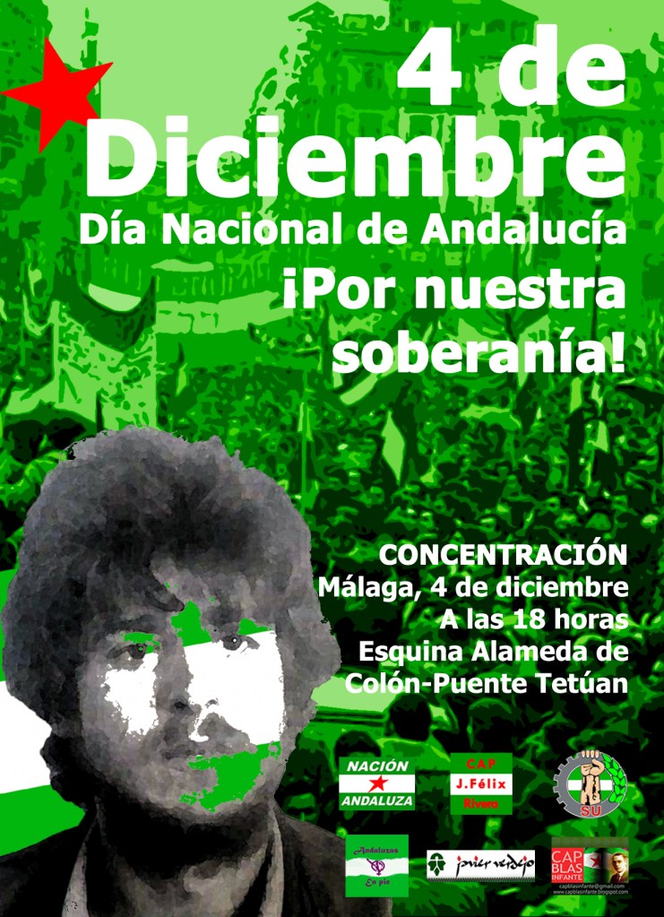 Nación Andaluza con diversas organizaciones como el Sindicato Unitario de Andalucía, Andaluzas en Pie y los Centros Andaluces del Pueblo nos daremos cita el 4 de diciembre en Málaga otro año más. Será a las 18 horas en la esquina de Alameda de Colón con Puente de Tetuán, en la que cayó asesinado Manuel José García Caparrós a manos de la policía.