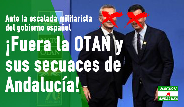 Por todo ello Nación Andaluza denunciamos la política del Estado español que, de hecho, hace parte a nuestro país del conflicto militar del lado de la OTAN. Rechazamos la presencia de bases militares al servicio de la OTAN en nuestro suelo y en general de todas las bases militares españolas. Y denunciamos el carácter traidor de la izquierda estatalista a los intereses de los pueblos trabajadores del Mediterráneo y de Europa poniéndose, de nuevo, del lado del amo estadounidense.