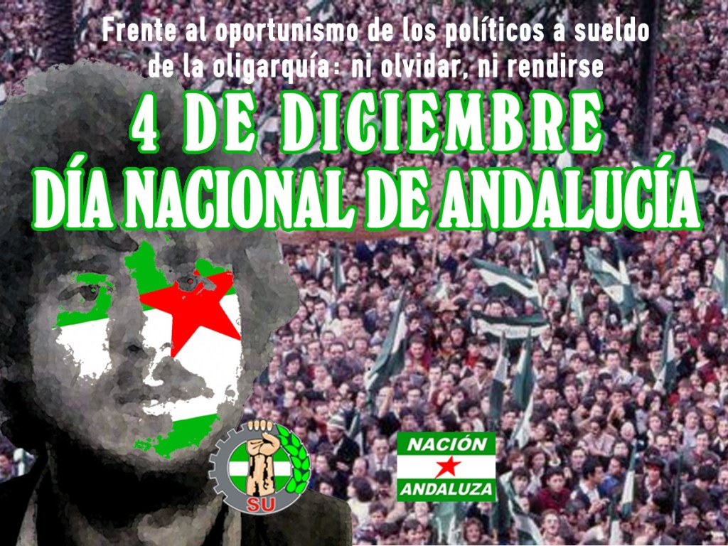 1º Para Nación Andaluza y el Sindicato Unitario de Andalucía la liberación de la clase obrera y la conquista de nuestra soberanía nacional son pilares de nuestros proyectos colectivos. Históricamente hemos sostenido la reivindicación del 4 de diciembre como nuestro Día Nacional y, en este sentido, la declaración de Moreno Bonilla como “día de la bandera” no deja de ser un enjuague acorde a sus intereses partidistas que rebaja el carácter nacional de Andalucía.