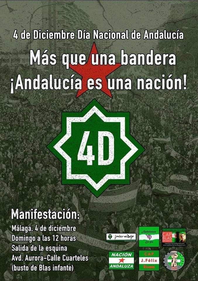 Frente al secuestro de la soberanía popular que representa el 28 de febrero, la izquierda independentista y soberanista andaluza representada por sus organizaciones políticas, sindicales, culturales, feministas… reclama el día 4 de diciembre como el DÍA NACIONAL DE ANDALUCÍA en conmemoración de las manifestaciones del 1977 que exigían soberanía y en recuerdo de aquellos que dieron su vida por el ideal de una Andalucía Libre.