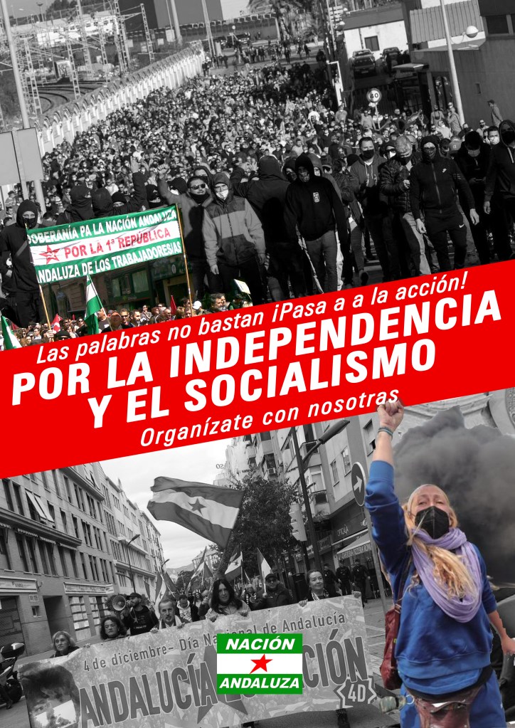 En este contexto es urgente la organización y la lucha por nuestra liberación. Denunciar a quienes en Andalucía son cómplices -por acción u omisión- del imperialismo. No retroceder ni un paso en la reivindicación de nuestra independencia nacional. No esperar nada de las instituciones burguesas, trabajando para su colapso e implosión. No dar ni un centímetro a la conciliación de clases, luchando para la toma del poder por la clase obrera. Aplastar el patriarcado en todas sus formas. Combatir la adulteración del pensamiento revolucionario y soberanista de Blas Infante.
