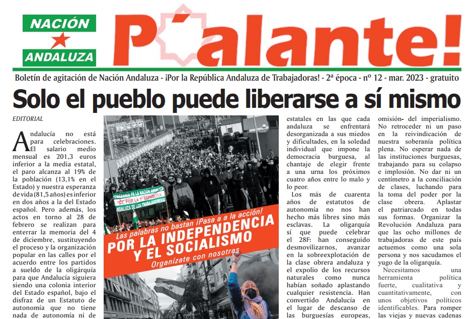 Ya está disponible el nº 12 del boletín de agitación de Nación Andaluza P’ALANTE.