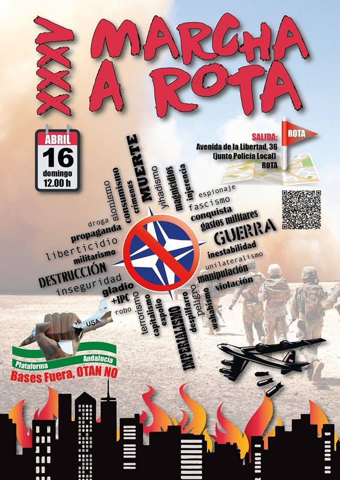 Este domingo 16 de abril a las 12 de la mañana, el movimiento popular y antiimperialista andaluz volvemos a tener una cita importantísima: la XXXV Marcha a la Base militar de Rota, que partirá desde el mismo pueblo de Rota hasta la base militar yanqui.