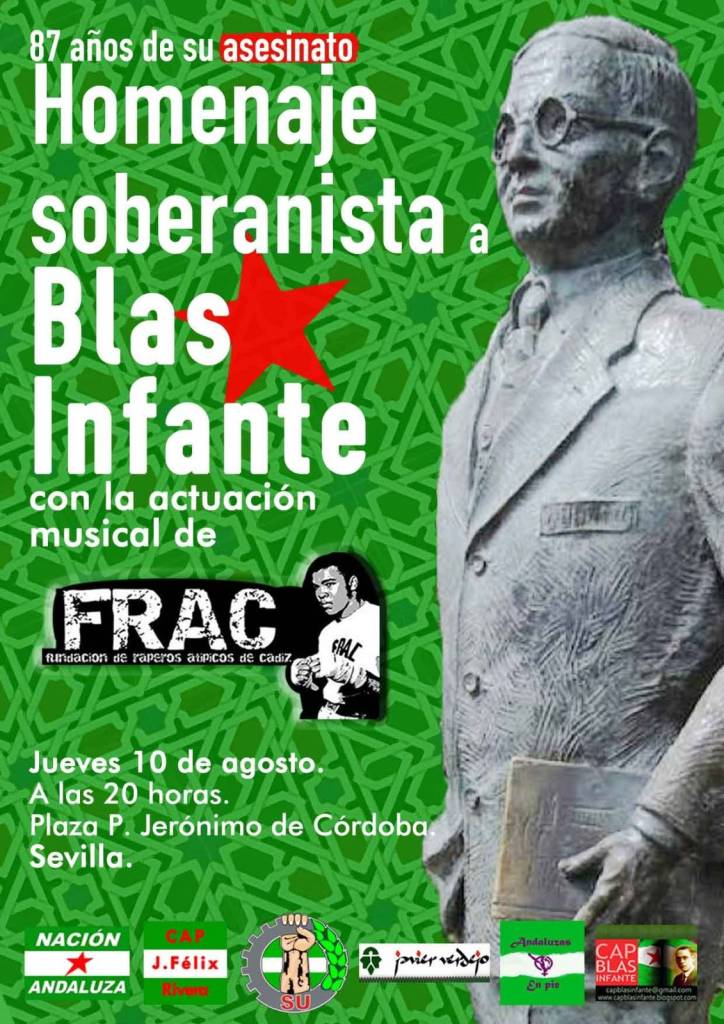 Nación Andaluza, junto a otras organizaciones soberanistas, venimos organizando un homenaje anual a Blas Infante en el aniversario de su asesinato reivindicando al Blas Infante revolucionario e independentista. A aquel que dijo: “Nosotros aspirábamos, aspiramos y seguiremos aspirando a la elaboración de un Estado libre en Andalucía. …Pues nosotros no tenemos, por ahora, otras denominaciones que las de República Andaluza o Estado libre o autónomo de Andalucía para llegar a expresar aquella Andalucía soberana, constituida en Democracia Republicana que dice el artículo primero de la Constitución elaborada para Andalucía por la Asamblea de Antequera, hace medio siglo, en 1883…”.