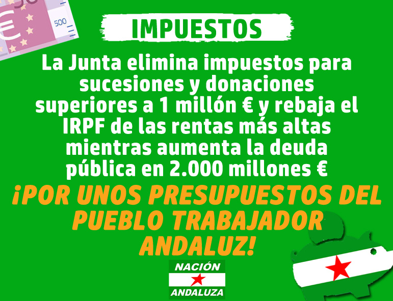 Presupuestos 2021 ¡Por unos presupuestos del Pueblo Trabajador Andaluz! ANÁLISIS: 1.- ¡No a otros presupuestos andaluces del subdesarrollo! 2.- ¡Por unos presupuestos para el Pueblo Trabajador Andaluz! 3.- Propuestas presupuestarias y fiscales de Nación Andaluza. CARTELERÍA: Comparte esto: Haz clic para enviar un enlace por correo electrónico a un amigo (Se abre en una ventana nueva) Correo electrónico Haz clic para imprimir (Se abre en una ventana nueva) Imprimir Haz clic para compartir en X (Se abre en una ventana nueva) X Haz clic para compartir en Facebook (Se abre en una ventana nueva) Facebook Haz clic para compartir en LinkedIn (Se abre en una ventana nueva) LinkedIn Haz clic para compartir en Reddit (Se abre en una ventana nueva) Reddit Más Haz clic para compartir en Tumblr (Se abre en una ventana nueva) Tumblr Haz clic para compartir en Pinterest (Se abre en una ventana nueva) Pinterest Haz clic para compartir en Pocket (Se abre en una ventana nueva) Pocket Me gusta Cargando...